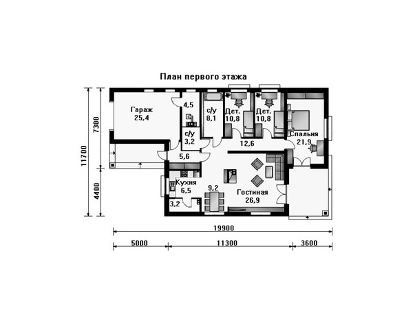 Проект содержит комплект чертежей для строительства и регистрации дома. Включает следующие данные: